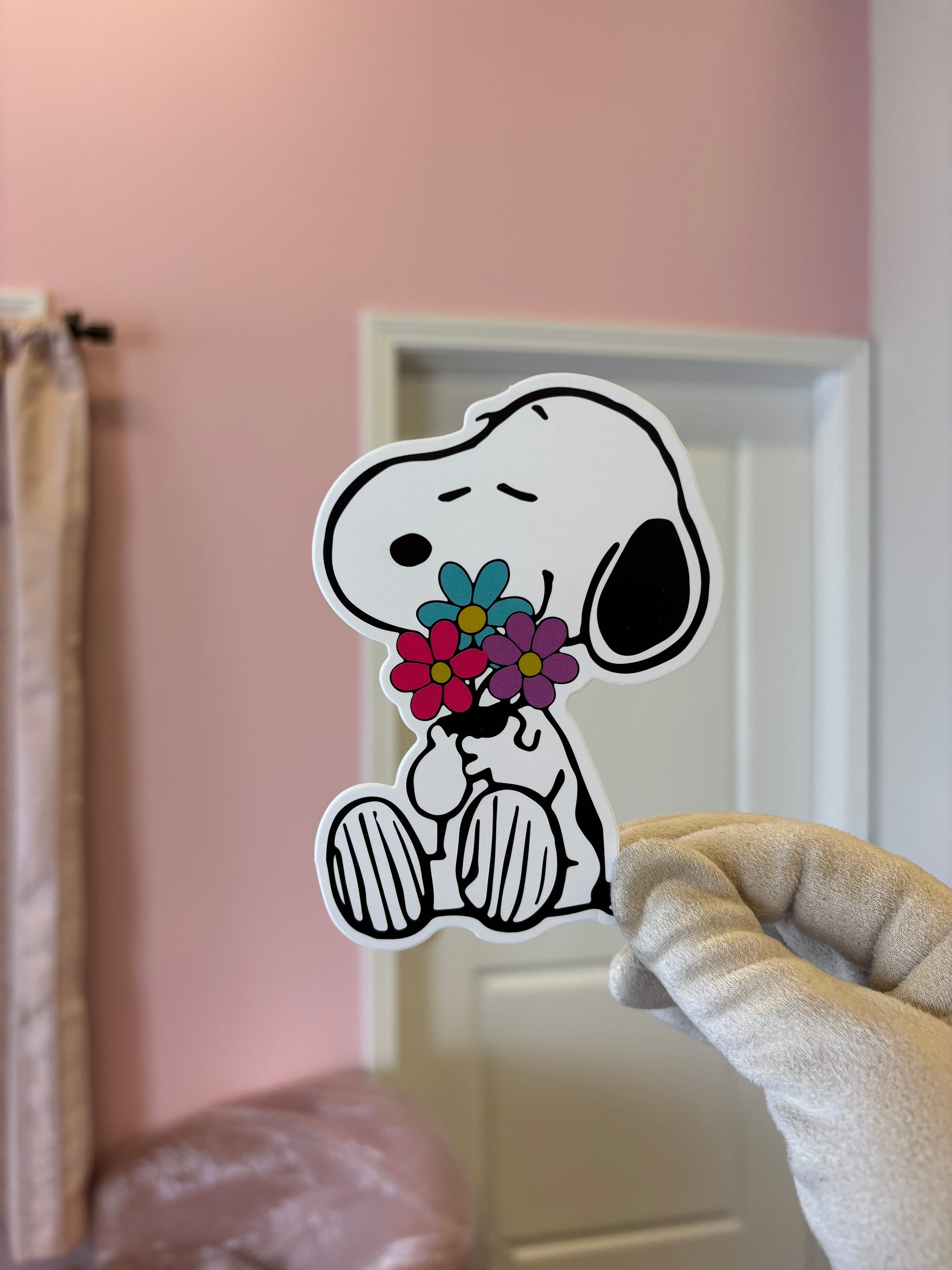 Snoopy hugging flowers 🌺